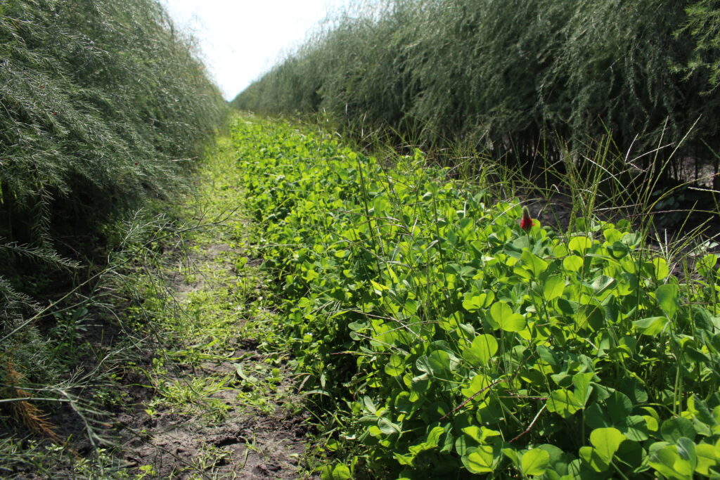 From an agronomical perspective, vegetation cover improves soil structure through the roots’ development of species in different soil horizons, thus enhancing the soil’s water capacity. The cover also protects against soil erosion. What’s more, growing species with taproots captures mineral elements such as nitrates in the deepest layers of the soil and limits leaching, while legumes bring nitrogen to the soil. Pulverising the foliage and root volume makes it possible to increase the soil’s humus content. The addition of organic matter significantly improves the soil’s microbial activity, thereby increasing the availability of nutrients. When a vegetation cover is maintained on a plot throughout the life of an asparagus plantation, the percentage of organic matter in the inter-rows is higher, rendering the plot more favourable for replanting, especially in asparagus groves with large spacing (more than 3.50m). It is worth considering applying vegetation coverage permanently in order to make the most of its thermal benefits throughout the crop cycle. In spring, when the vegetation cover develops above the mounds prior to harvest, this offers a “windbreak effect” that makes the plastics less likely to fly away or be removed. It also assists by warming the mound more quickly as it is less exposed to the wind, often from the north. An additional degree above 12°C at the crown can result in an additional 30 kg/ha harvested per day at the beginning of the asparagus season. Once it has been cut down in the first days of harvest, the vegetation cover can provide the soil with greater bearing capacity for the passage of harvesting machinery, especially during +rainy periods.